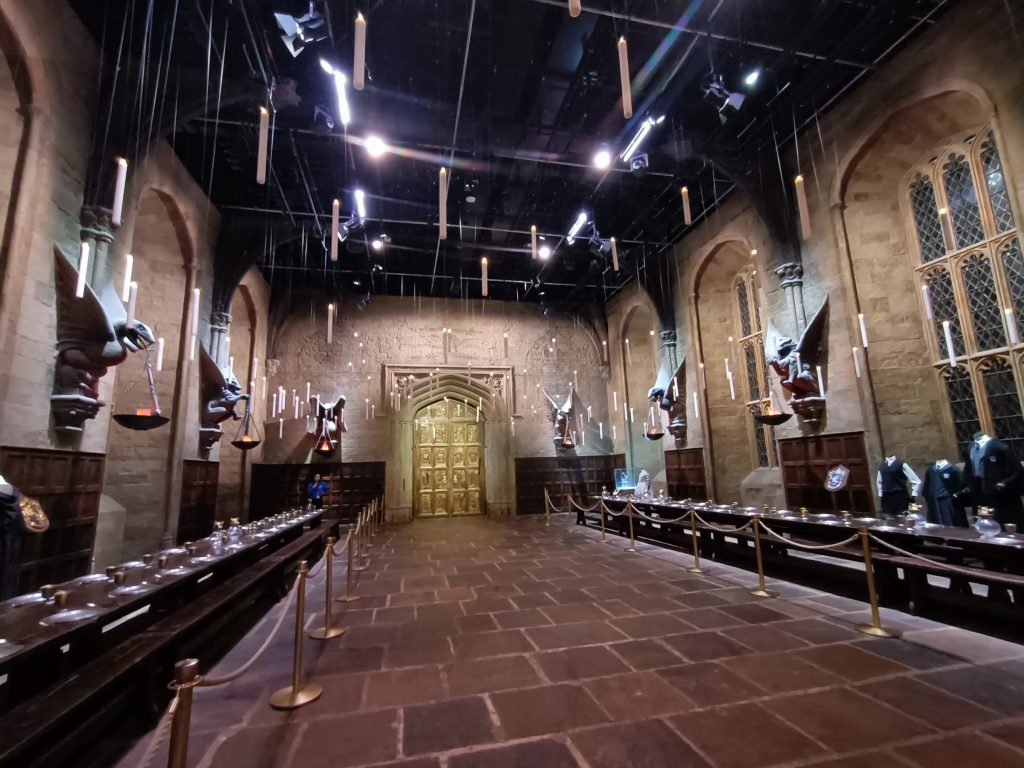 Insgesamt waren wir 5 Stunden in der Ausstellung. Der Durchgang ist mit ca. 3-4 Stunden angegeben. Darüber hinaus kann man aber bei der Hälfte der Tour an der Butterbierbar verweilen oder später dann Abendessen im Ambiente der Großen Halle mit schwebenden Kerzen über den Köpfen. Das „normale“ Restaurant hat übrigens sehr faire Preise, wir haben das Essen vor Ort aber nicht getestet.