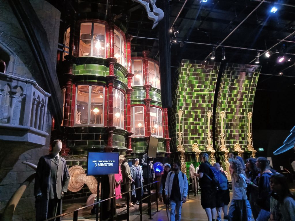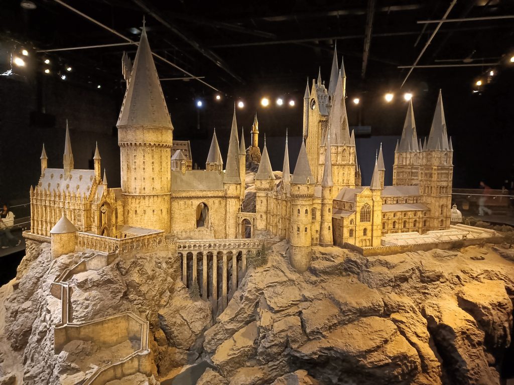 Man kann außerdem selber auf einem Besen fliegen, sich so groß wie Hagrid fotografieren lassen, in verschiedenen Transportmöglichkeiten „fahren“, Butterbier trinken, in der Maske erleben wie die verschiedensten Charaktere entstehen (bspw. Lord Voldemort als Baby) und ganz am Ende erlebt man Hogwarts im großen Modell, das so detailreich gestaltet wurde und mit dessen Hilfe die ganzen Außenansichten gedreht wurden.