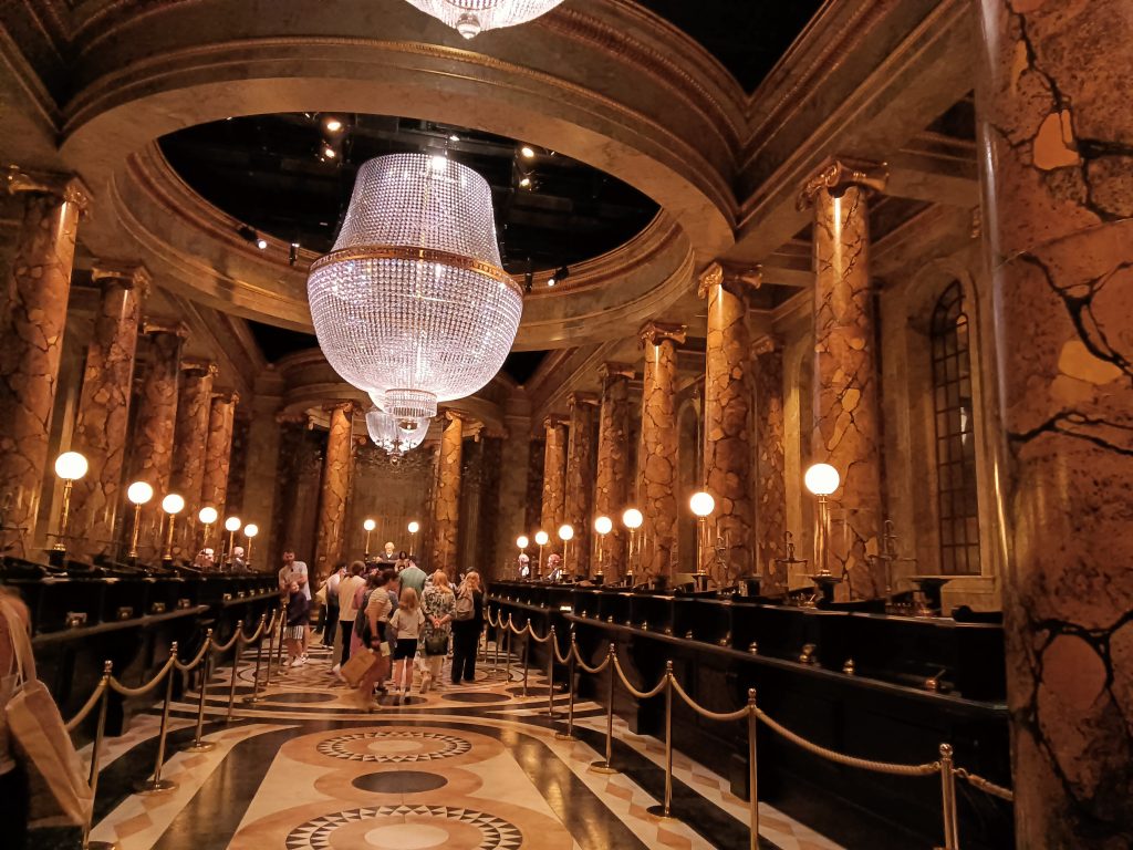 Der Rundgang beginnt in einer Kleingruppe, da man einen festen Timeslot bucht und auch rechtzeitig vor Beginn am Eingang sein muss. Dort kann man als erstes Harry unter der Treppe besuchen. Es folgen verschiedene Stationen, die noch mit einem Guide erlebt werden, u.a. die Große Halle und Videosequenzen. Und dann öffnen sich die Türen zu den Originaldrehorten: dem verbotenen Wald, Dumbledores Büro, dem Gemeinschaftsraum der Gryffindors und Slytherins, dem Fuchsbau in dem auch tatsächlich alles wie von Zauberhand arbeitet, Hagrids Hütte, dem Klassenzimmer für Wahrsagerei, dem für Zaubertränke, Gringotts mit Verliesen, der Winkelgasse, dem Hogwartsexpress auf Gleis 9 3/4 und dem Zaubereiministerium. Immer wieder finden auch kleine Liveacts mit Musik oder Zauberei statt.