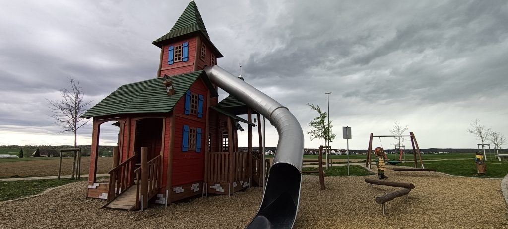 Wer noch nicht müde genug ist, der kann sich dann auf dem Pippi-Langstrumpf-Spielplatz austoben: Hier findet ihr die Villa Kunterbunt zum kochen, spielen, klettern und rutschen, außerdem könnt ihr auf dem „Kleinen Onkel“ reiten, trefft Herr Nilsson und den Papagei Rosalinda aus dem weit entfernten Taka-Tuka-Land. Natürlich ist auch Pippi höchstpersönlich vertreten und lädt euch zum Trampolin hüpfen, auf die Nestschaukel oder den Sandkasten ein. Für die größeren gibt es auch eine Tischtennisplatte. Parken könnt ihr im Wohngebiet – fahrt einfach bis hinten an den Spielplatz, die Parkplätze auf der rechten Seite sind dann keine Anwohnerparkplätze mehr.